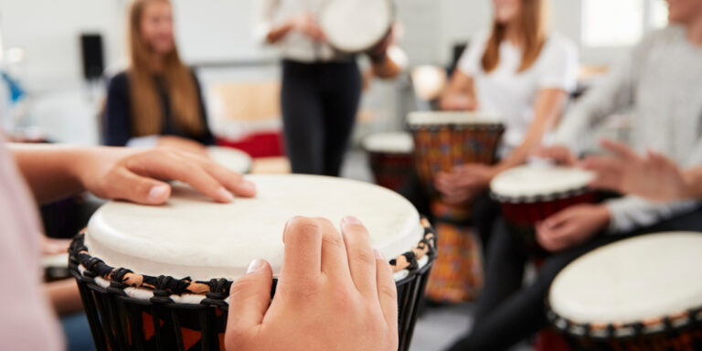 La agrupación de percusión es una formación que está compuesta únicamente por instrumentos de percusión. La actividad que se aborda en esta agrupación es la complementar el trabajo y estudio que se realiza en clase sin interferir demasiado en dicho trabajo. Se pretende también dar sentido al trabajo personal del alumno poniéndolo en práctica en conjunto instrumental de estas características.
